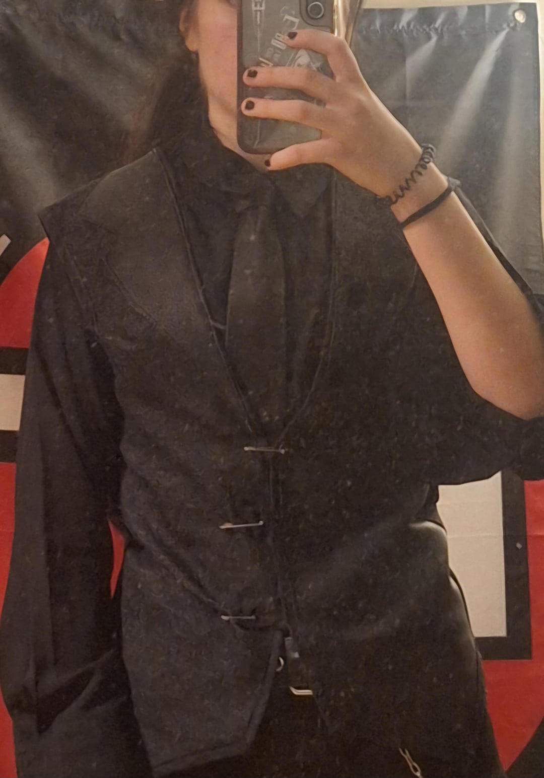 I’m deciding between these two outfits, but I haven’t gotten around to sewing on a fastener for the gilet yet. Ah and somehow I cobbled together my black suit pants so I would wear them instead of jeans. I know anyway that the black dance floor is a better place to dress up, so I would like to dress as I want at the school ball, but I don’t want to attract any attention. So yeah, what do you think is the better choice? Or should I wear something else? Thanks in advance 😅
