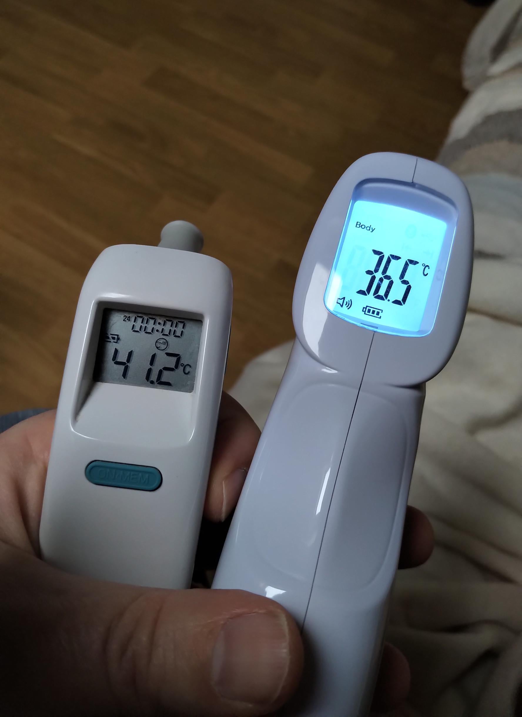 13. Je travaille dans une boite ou on fabrique les capteurs pour ce genre de thermomètres (on est dans ceux de marque Braun je crois), y’a un tas de moyen de mal les utiliser et d’arriver à des résultats erronés. Juste par curiosité. Faites le même test avec les deux mais sur une partie de votre corps que vous peignez en noir ou mettez une tache noire de stylo. Si les résultats changent c’est des problèmes de calibration. On recommande toujours de faire la mesure 2 fois avec ce genre de matos pour éviter les gradients en température.
