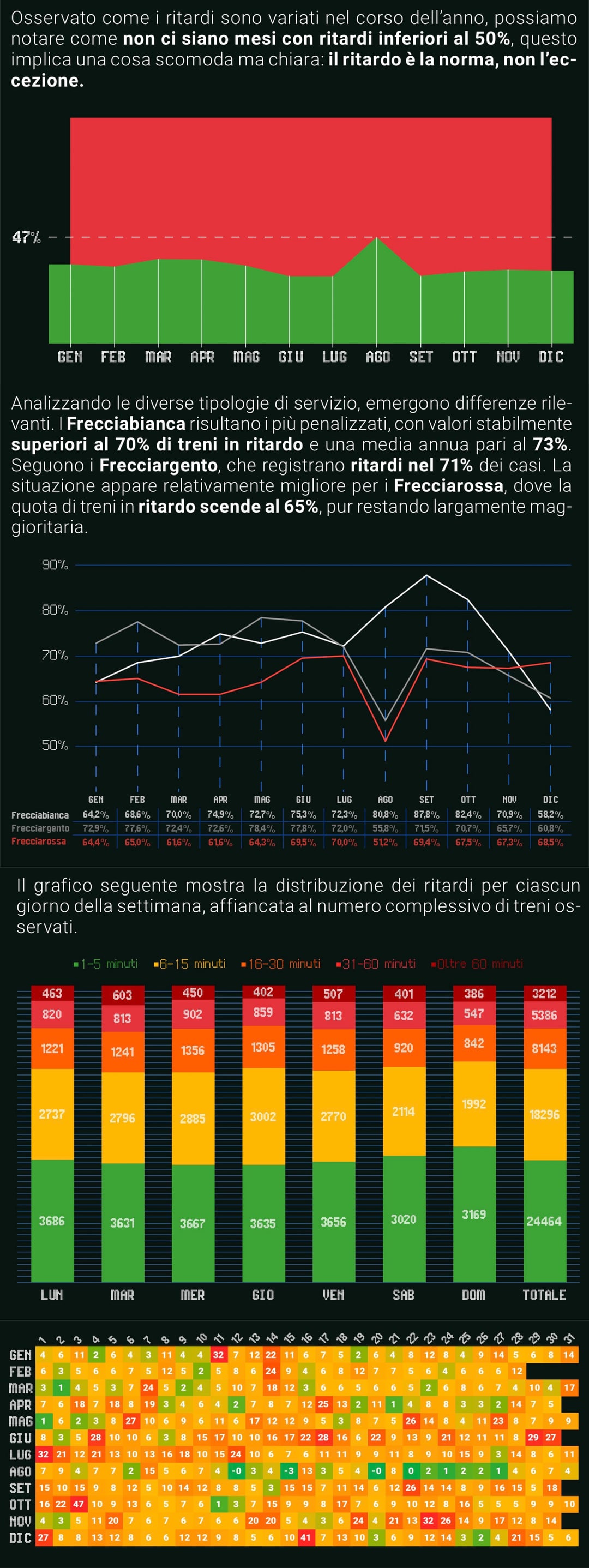 The data we provide are absolutely unique: never in the history of the Italian high-speed network has a work of this size been produced, an entire year of data analysed, with over 90,000 trains, all those of Trenitalia that traveled on the HS lines from 1 January to 31 December 2025 (Frecciarossa, Frecciabianca, Frecciargento).