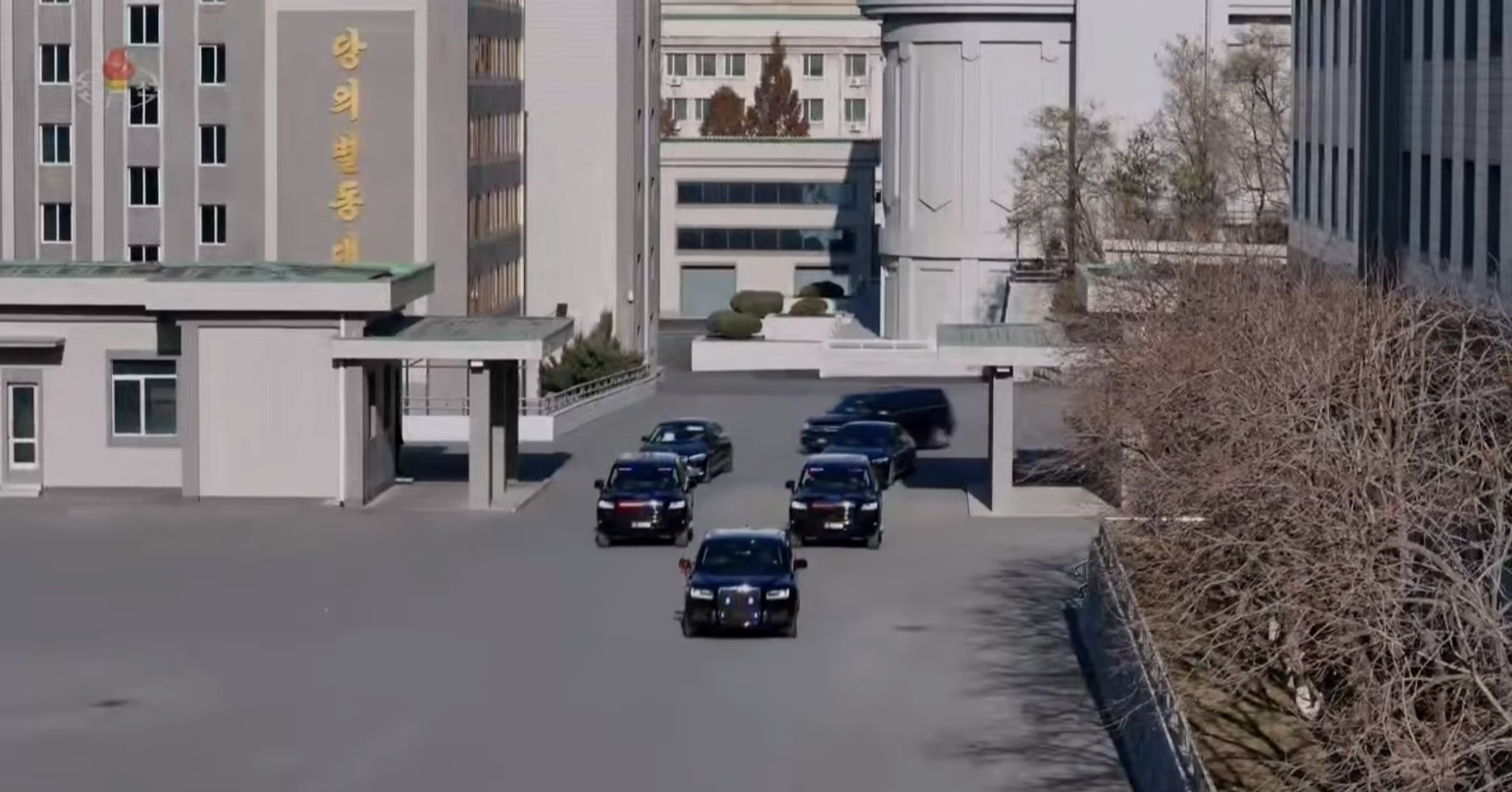 View of KJU’s motorcade arriving at State Security HQ (Photo: KCTV screenshot grab).