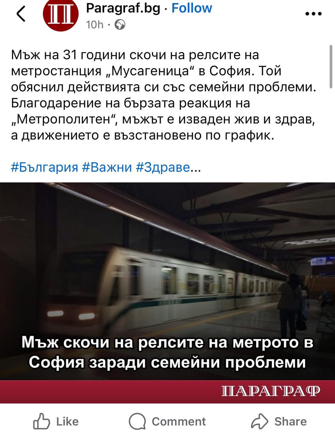 Доста е лошо, защото това показва, че на психическите състояния трябва да им се обръща внимание. Тъй като от метрото е имало бърза реакция, ама…