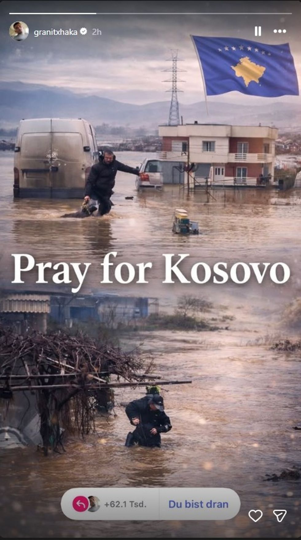Albanian midfielder Granit Xhaka has used social media to share the suffering of the citizens of Kosovo after the major floods that have occurred in several cities in our country.