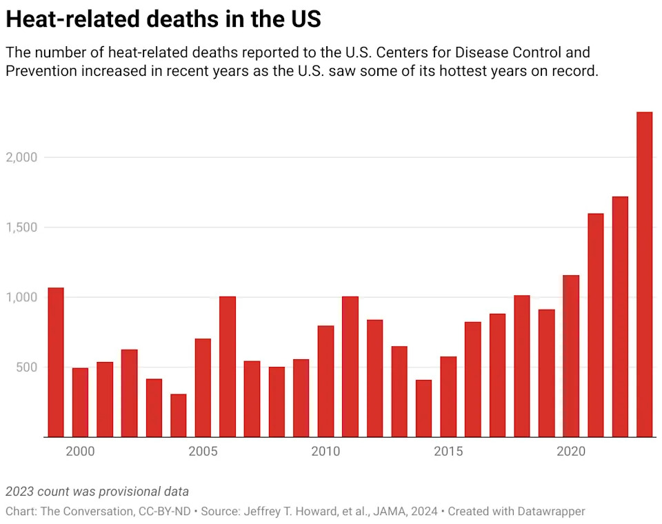 Heat deaths have been rising globally, up 23% from the 1990s to the 2010s, when the average year saw more than half a million heat-related deaths. Even in the U.S., the Pacific Northwest heat dome in 2021 killed hundreds of people.