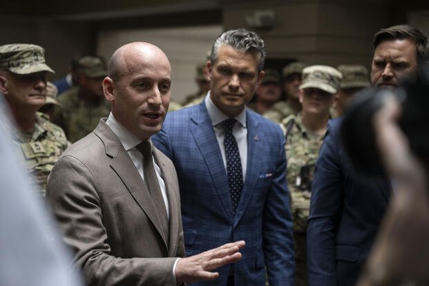 Vice President JD Vance, Secretary of Defense Pete Hegseth, and White House Deputy Chief of Staff Stephen Miller deliver remarks while meeting with National Guard troops positioned at Union Station as part of the D.C. Safe and Beautiful Task Force, Washington, D.C., Aug. 20, 2025. (DoD photo by U.S. Navy Petty Officer 1st Class Alexander Kubitza)