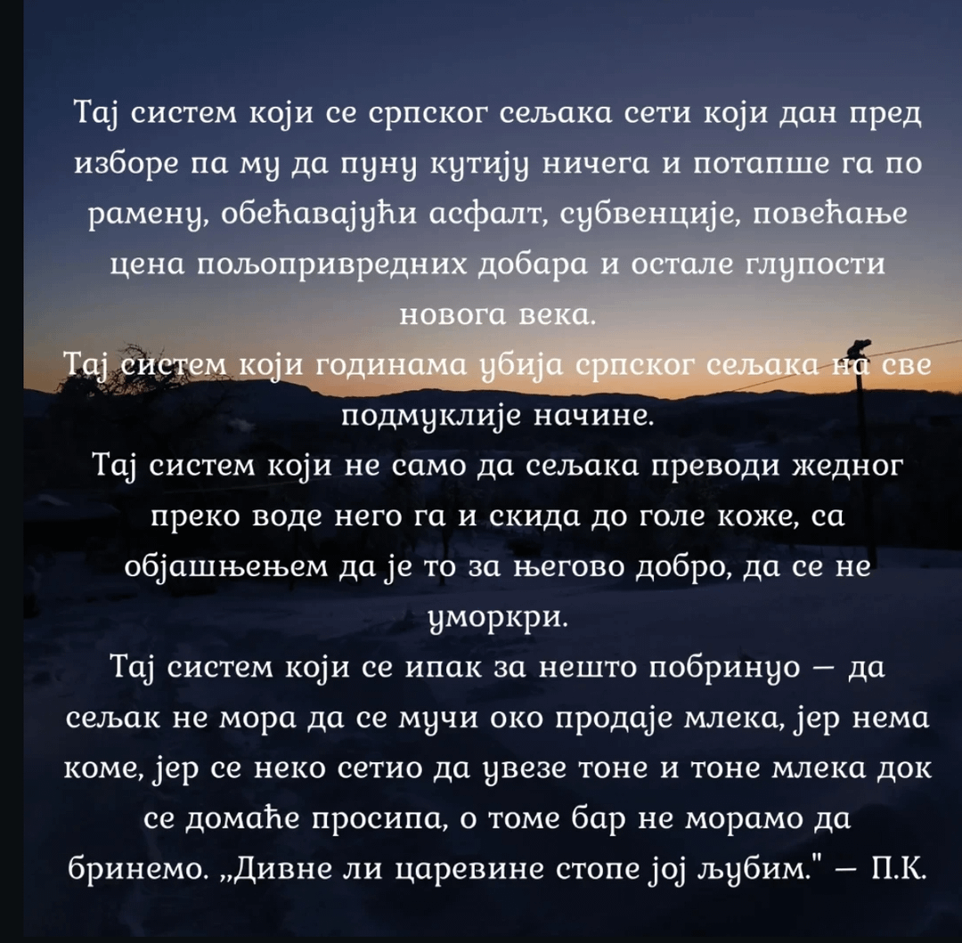 Ja sm ziveo na selu nikad nismo imali vode kad nemamo struje ali zato nikada nismo glasali za radikale sns i sps