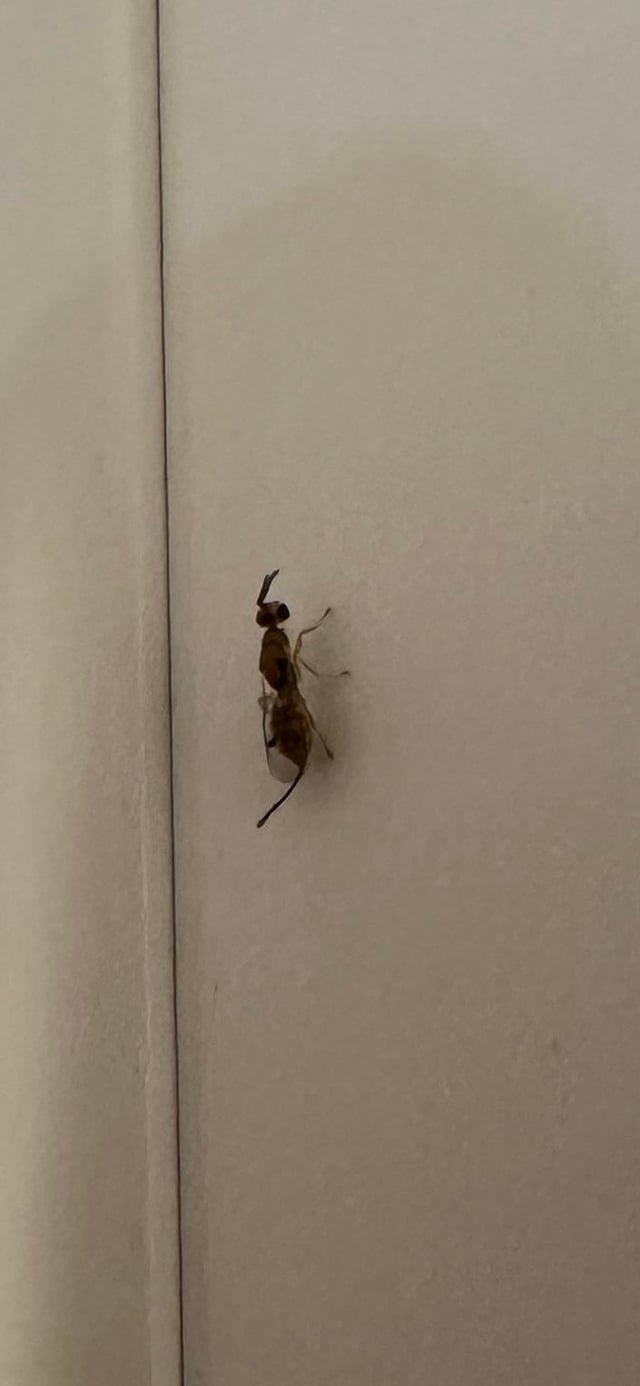 Samenwespe? Können durch befallene Hagebutten oder div. Zapfen von Nadelbäumen etc. Sein, also, Dekoration die du für Weihnachten besorgt hast (zB am Adventskranz oder so), und jetzt sind die alle gleichzeitig geschlüpft. Also nichts dramatisches ..