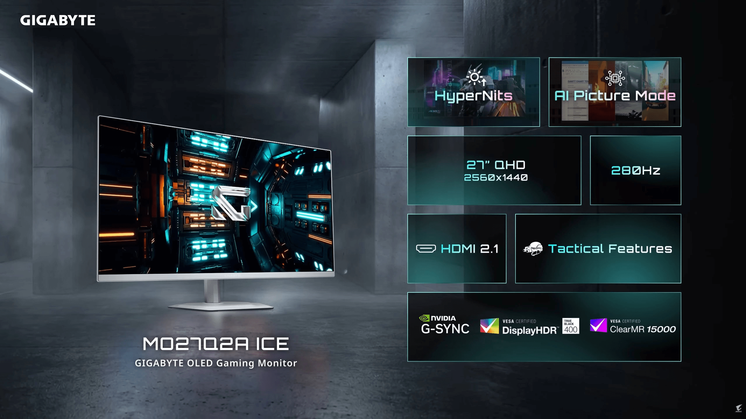 For users who prefer smaller displays, Gigabyte is introducing two 27-inch monitors. Both offer a resolution of 2,560 × 1,440 and a refresh rate of 280 Hz. The two models differ in panel technology, with one using a WOLED panel featuring ultra-low reflection of 1.1 percent and a peak brightness of up to 1,500 nits, making it more suitable for brightly lit environments.
