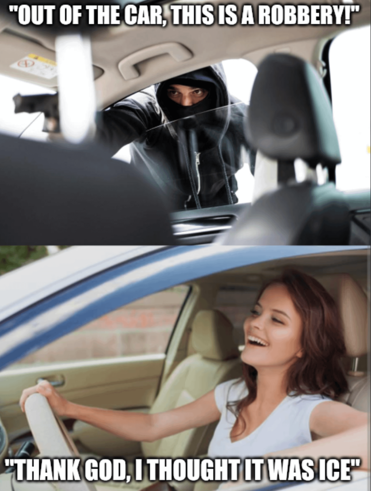 MrFunktasticc on January 11, 2026 2:46 am “Jesus Christ lady, what kind of monster do you think I am? I just want your stuff. Here, take your baby.” Literally easier to comply with a car jacker at this point.