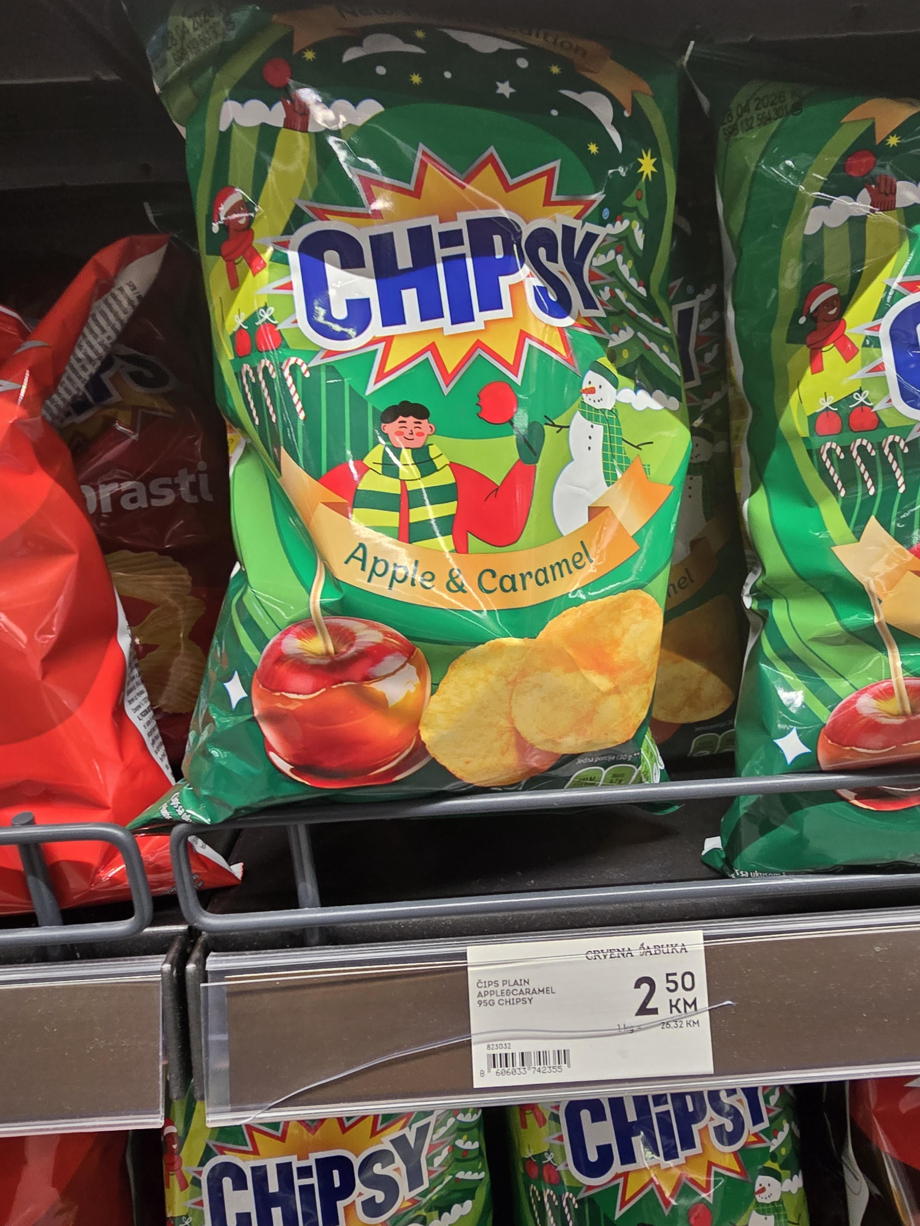 Probao sam ja da ne morate vi. Mislio sam da je čips od jabuke što je nešto super, ali ovo je obični slani čips od krompira s ukusom jabuke i karamele, jednom rječju – odvratno.