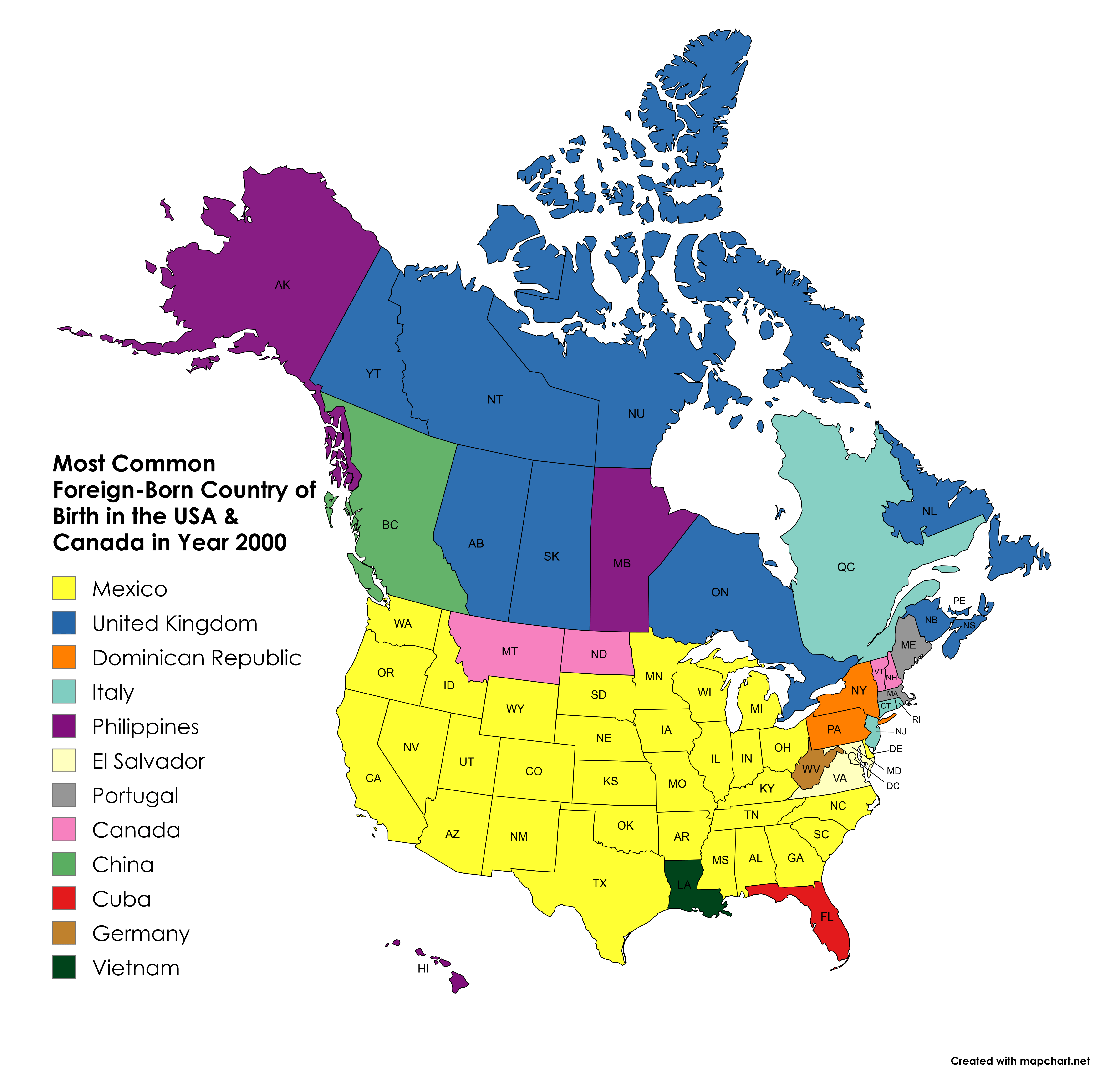 [https://en.wikipedia.org/wiki/Immigration_to_the_United_States#Demography](https://en.wikipedia.org/wiki/Immigration_to_the_United_States#Demography) – 11% of US population was foreign-born in year 2000
