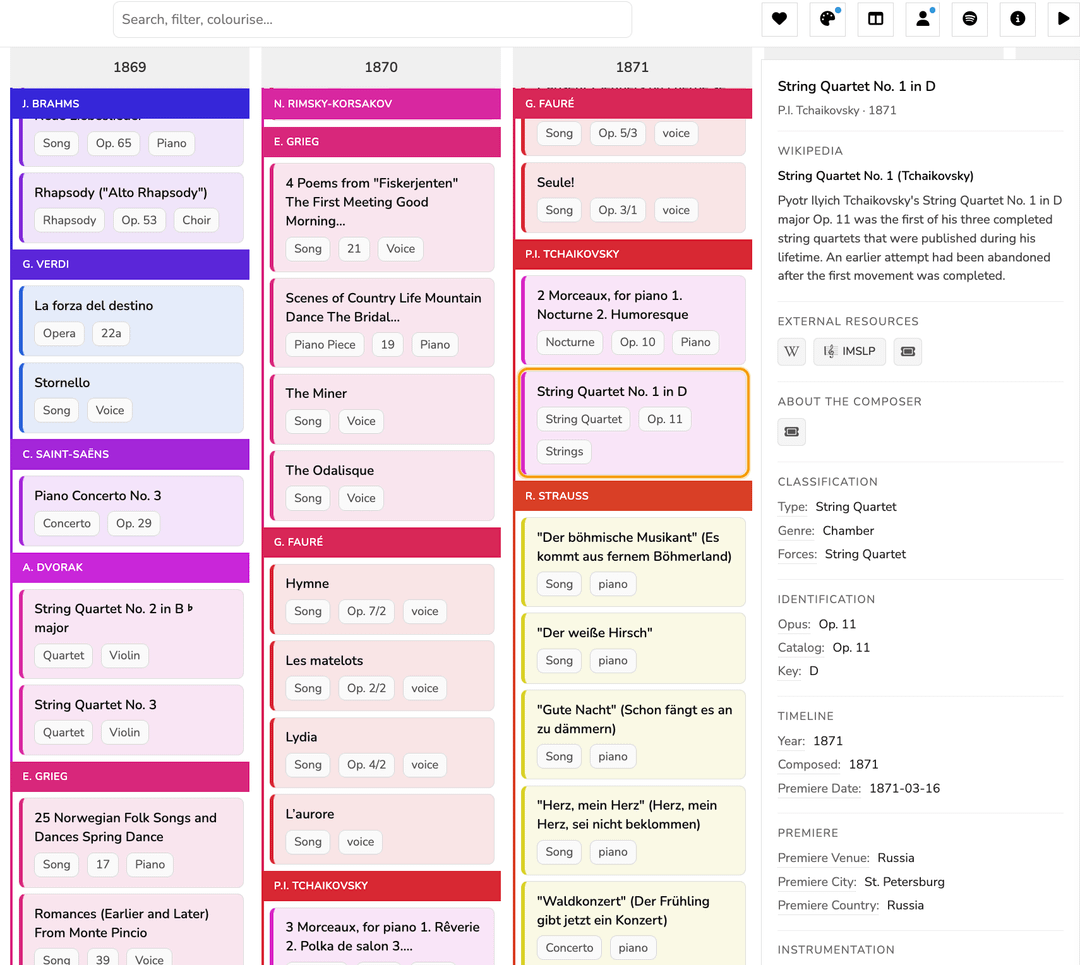 Source data: Mostly Wikipedia "Compositions by <composer>" pages