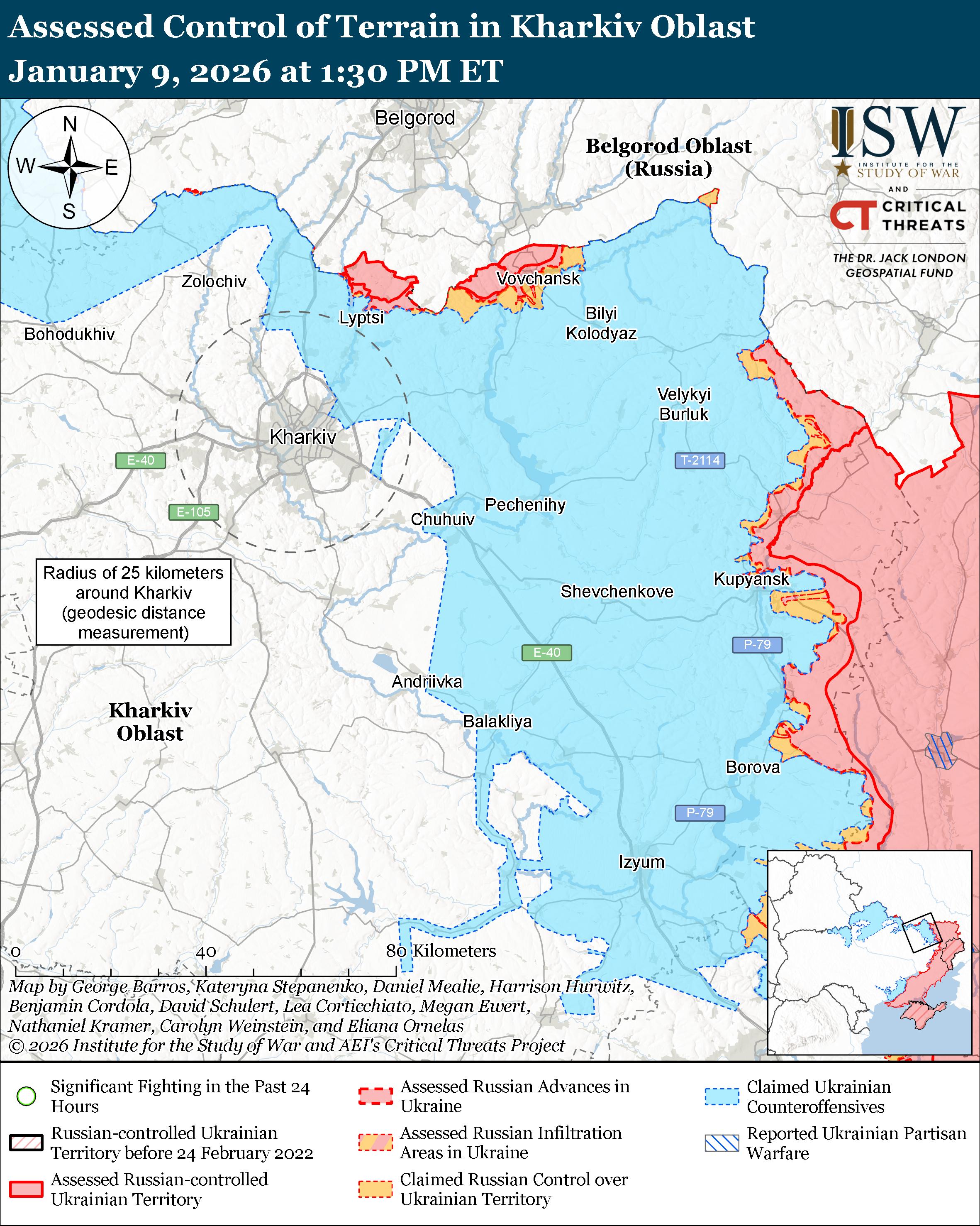 Russian forces continued infiltration missions south of Borova on January 9 but did not advance in the Borova direction.