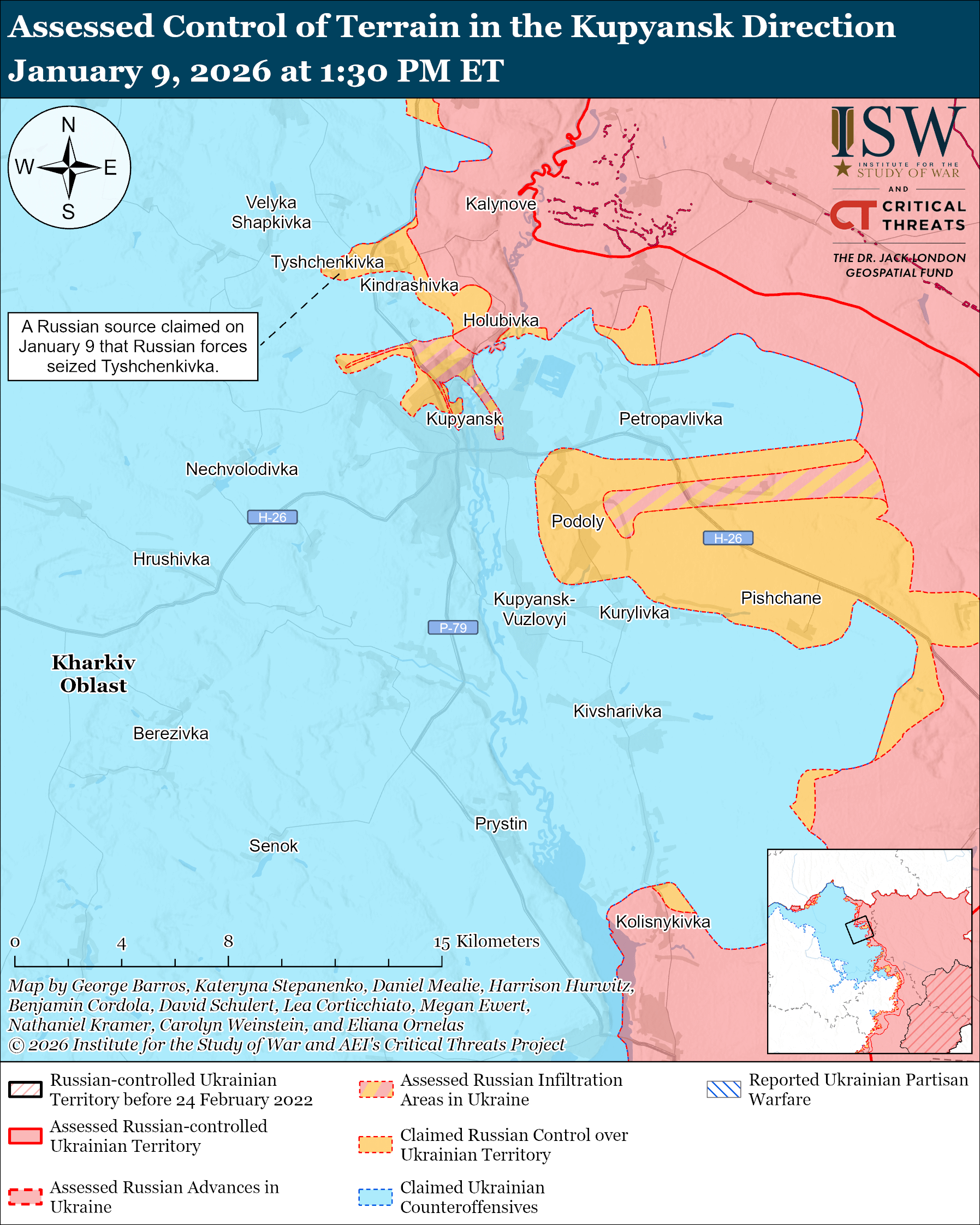 Russian forces continued offensive operations in the Kupyansk direction on January 9 but did not make confirmed advances.
