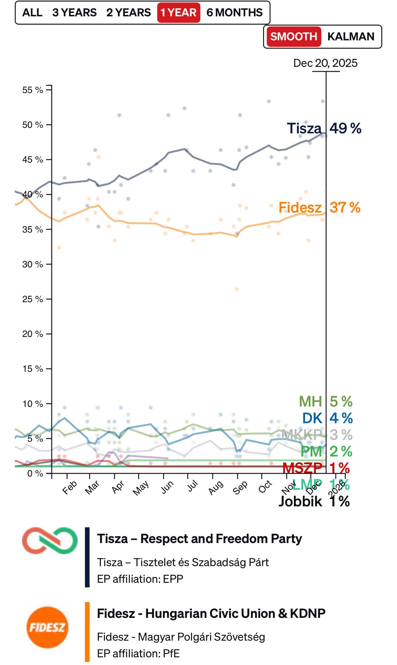 **BTW this is a poll overview which also shows propaganda polls. Real polls show that Tisza is at 53% and fidesz is at 37%** which means that Tisza is really close to having 2/3 supermajority!