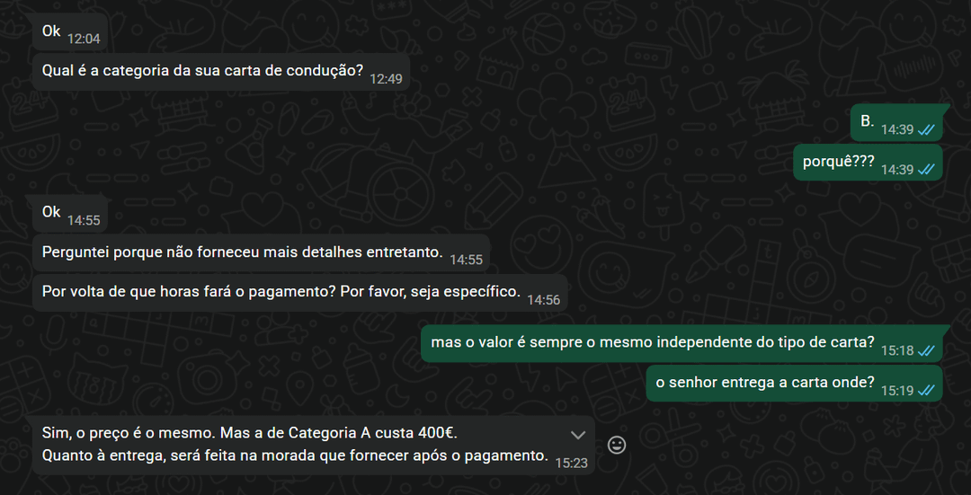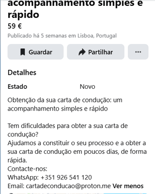 Há um ou dois meses fiz um comentário num Tiktok de uma rapariga a aprender a estacionar. Passado umas horas, uma página chamada “Service.imt.online” tenta seguir-me e manda-me mensagem a dizer que me arranjam uma carta de condução sem ter que fazer aulas de condução ou código. Reportei ao tiktok a fraude, mas como sempre disseram que não havia violação. Nem me passou pela cabeça falar com autoridades, e agora já não tenho a mensagem. Mas o perfil ainda está aberto.