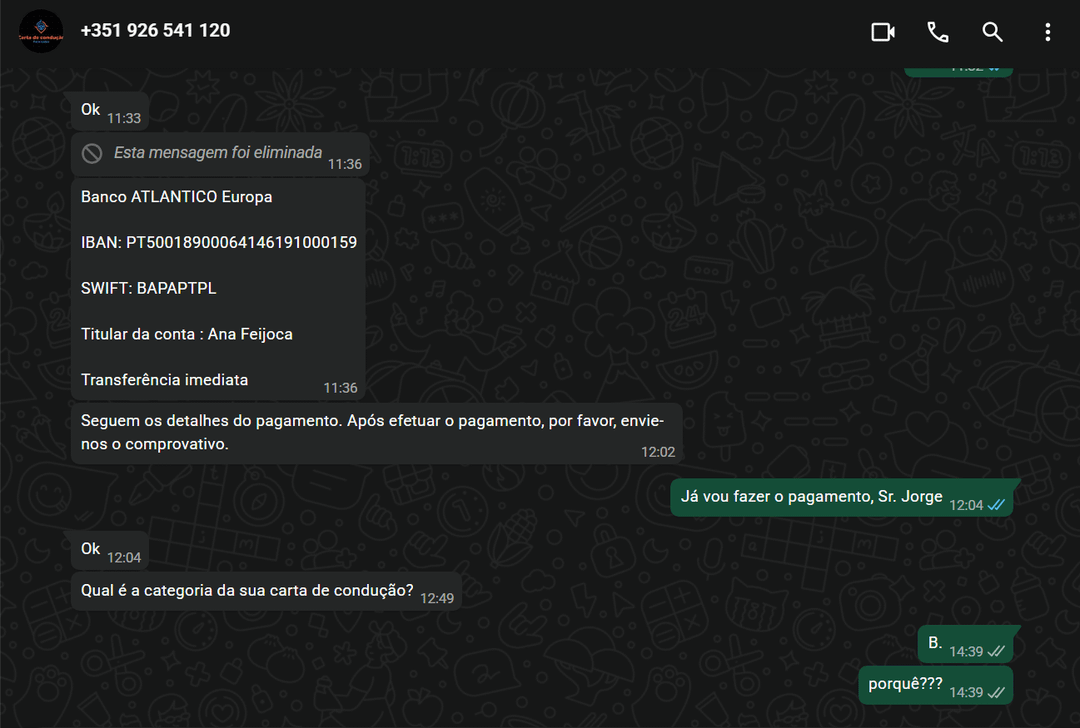 Yes, I’ll file a complaint, I just don’t know where. I don’t know if anyone will want to help with this, also making a complaint or something like that. However, it seems to me that this is a market that took place in the open. Cards are sold (or else it’s simply a scam, where they don’t deliver anything and you just keep the money). And it also intrigues me that people do this and then give IBANs that are always associated with people. Are these people fictitious? I went to check at the bank what the IBAN name was and they gave me a "Ana Patricia Almeida Feijoca". Does this person exist?