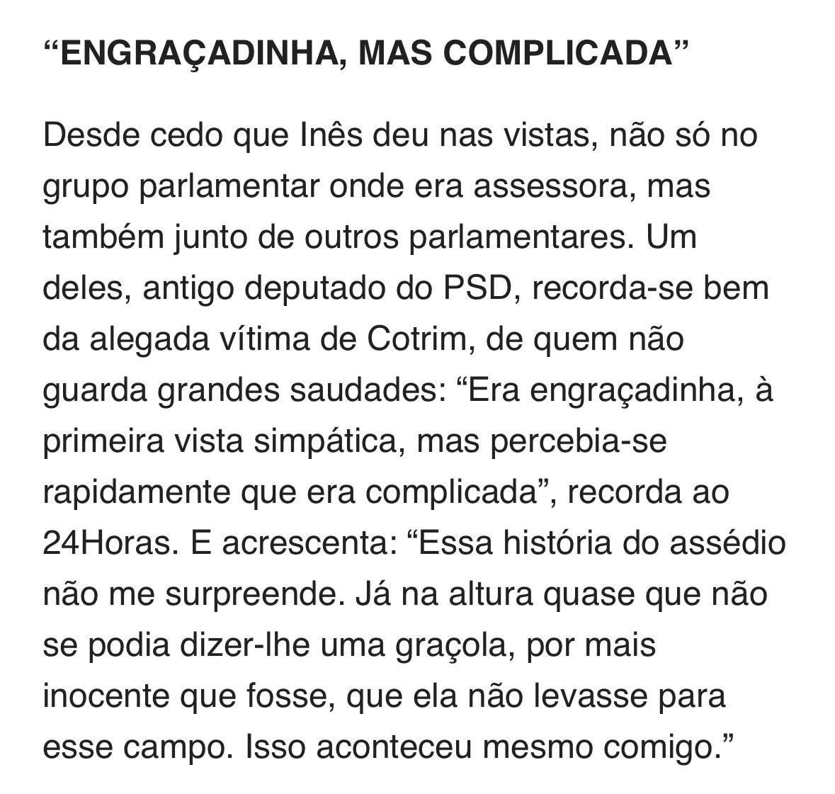 Isto é suposto ser uma tentativa de descrebilizar a alegada vítima? É porque faz exatamente o contrário e coloca ainda em causa o que se passará pelos corredores da assembleia.