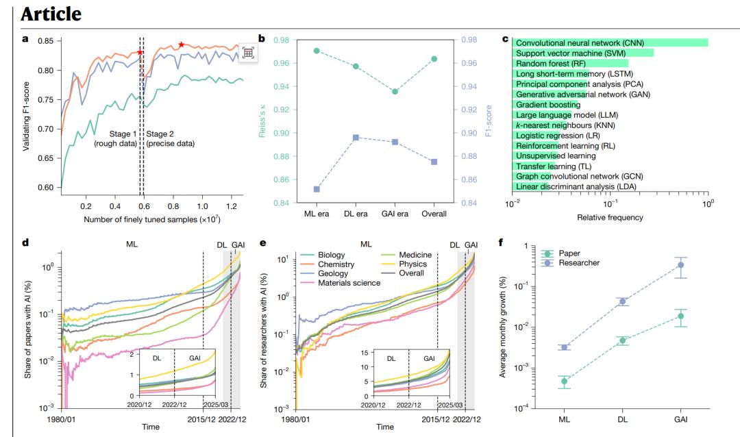 Based on this dataset, the team systematically analyzed the impact of AI in six major fields of natural science (biology, medicine, chemistry, physics, materials science, and geology).