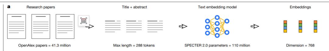 Specifically in the first step, they took the titles and abstracts that best represent the content of each paper as the core text and converted them into a fixed – length mathematical vector consisting of 768 numbers through a deep embedding representation model.