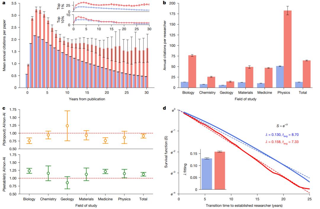 The results show that at the micro – individual level, scientists using AI publish 3.02 times more papers and get 4.84 times more citations than those not using AI.