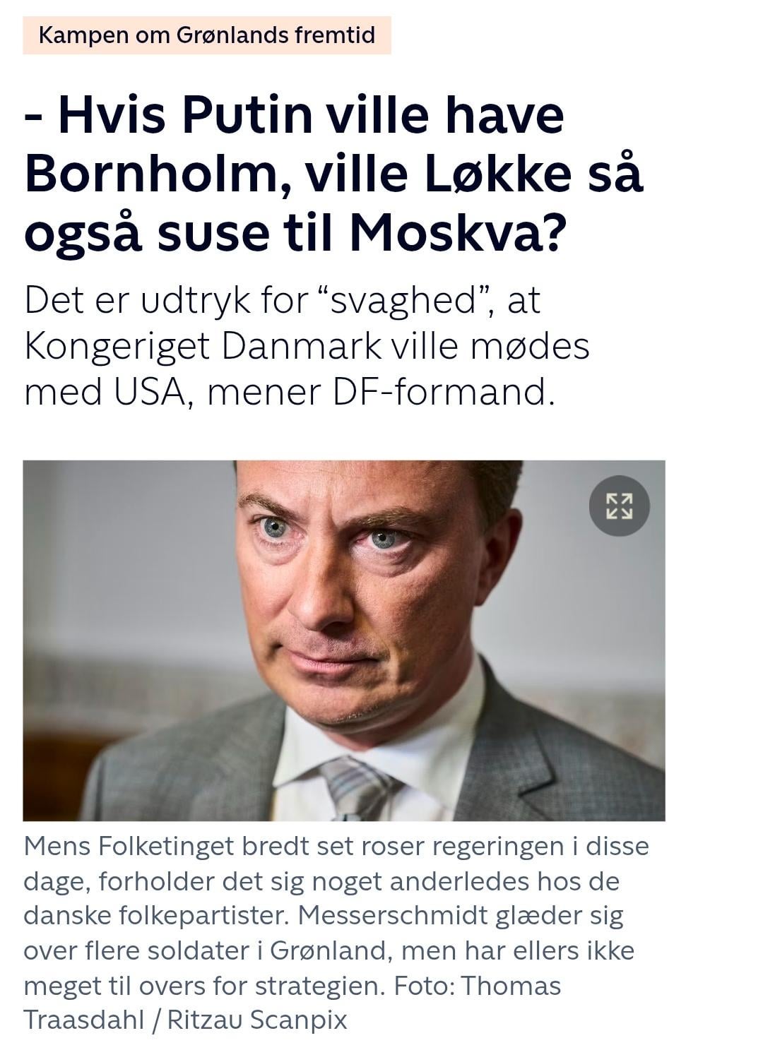 Kan ikke se hvorfor folk er så uenige i dette. At nægte USA nogen snak om kompromis ville have været et stærkt signal at sende. Messerschmidt har i lang tid talt for at vi styrker vores forsvar samt medejerskab (med Grønland) af Grønland, men jeg er godt klar over at folk herinde mener at Messerschmidt = forræder/nazist.