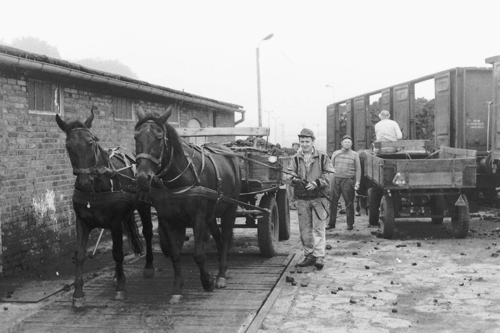 Poland’s coal industry, once a backbone of the Polish economy, is now being phased out. “Coal being unloaded from train wagons, Poland 1995” by Dupont66 is licensed under CC 4.0.