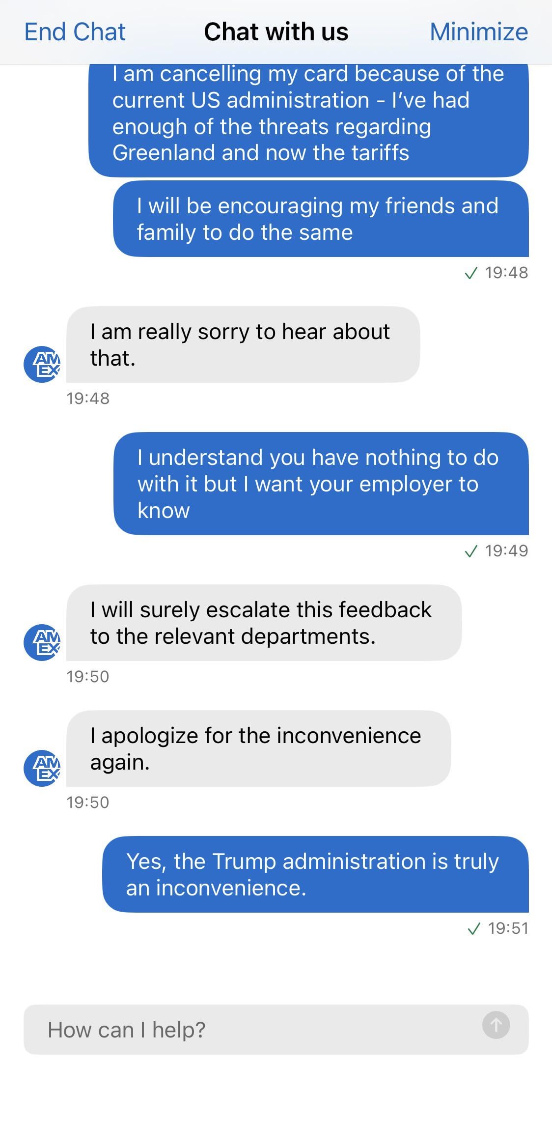 But Amex sucked anyway (more and more people don’t accept Amex as a means of payment) and I’ve stopped drinking American wine and spirits. I wanted to do *something* to mark. Vote with your money.