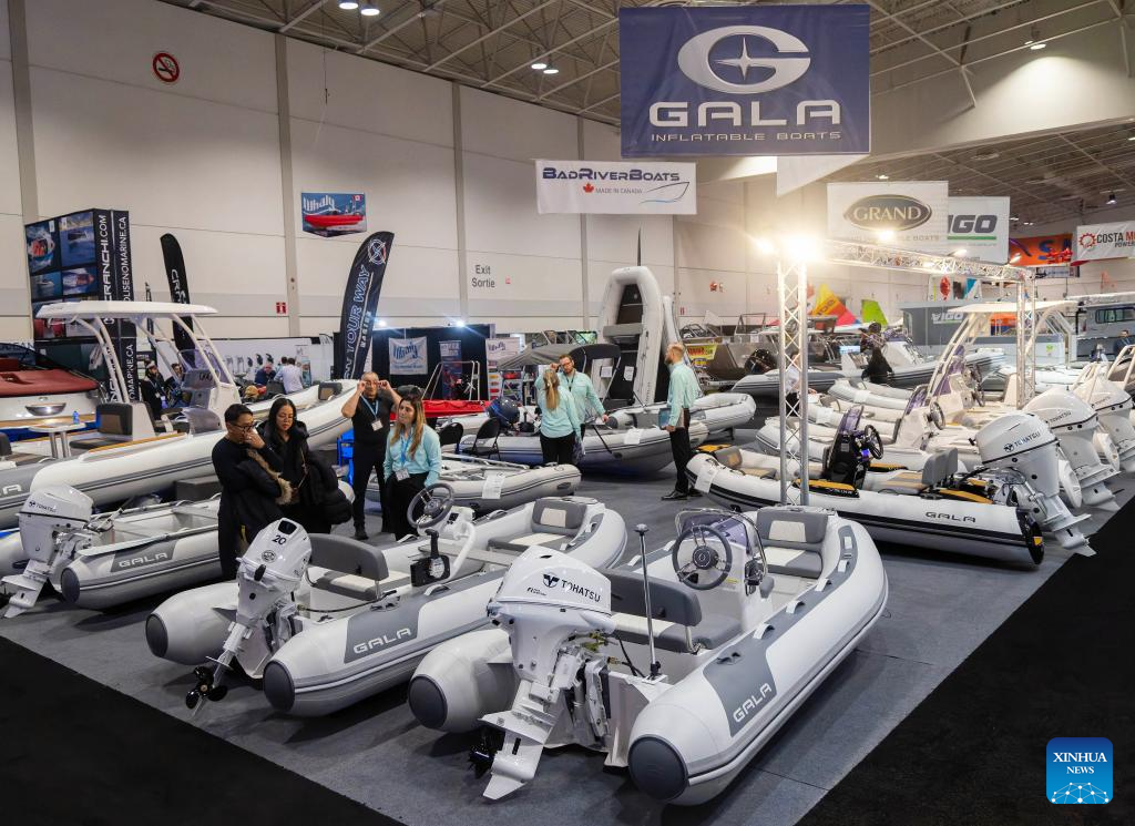 People visit the 2026 Toronto International Boat Show in Toronto, Canada, on Jan. 17, 2026. Showcasing more than 1, 000 boats of all sizes, the annual event kicked off here on Saturday and will last until Jan. 25 this year. (Photo by Zou Zheng/Xinhua)
