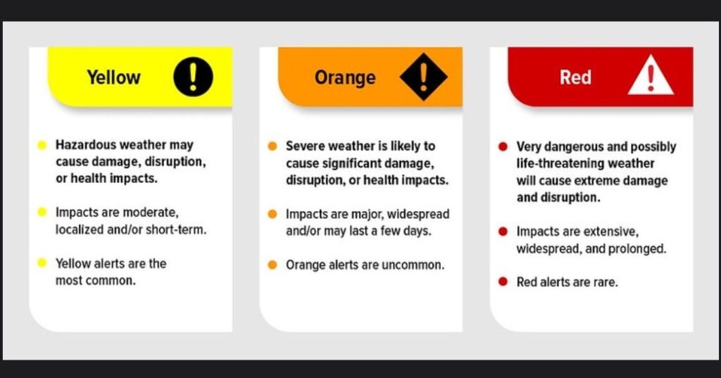 For more information about the alerting program, please visit: Colour-coded Weather Alerts.