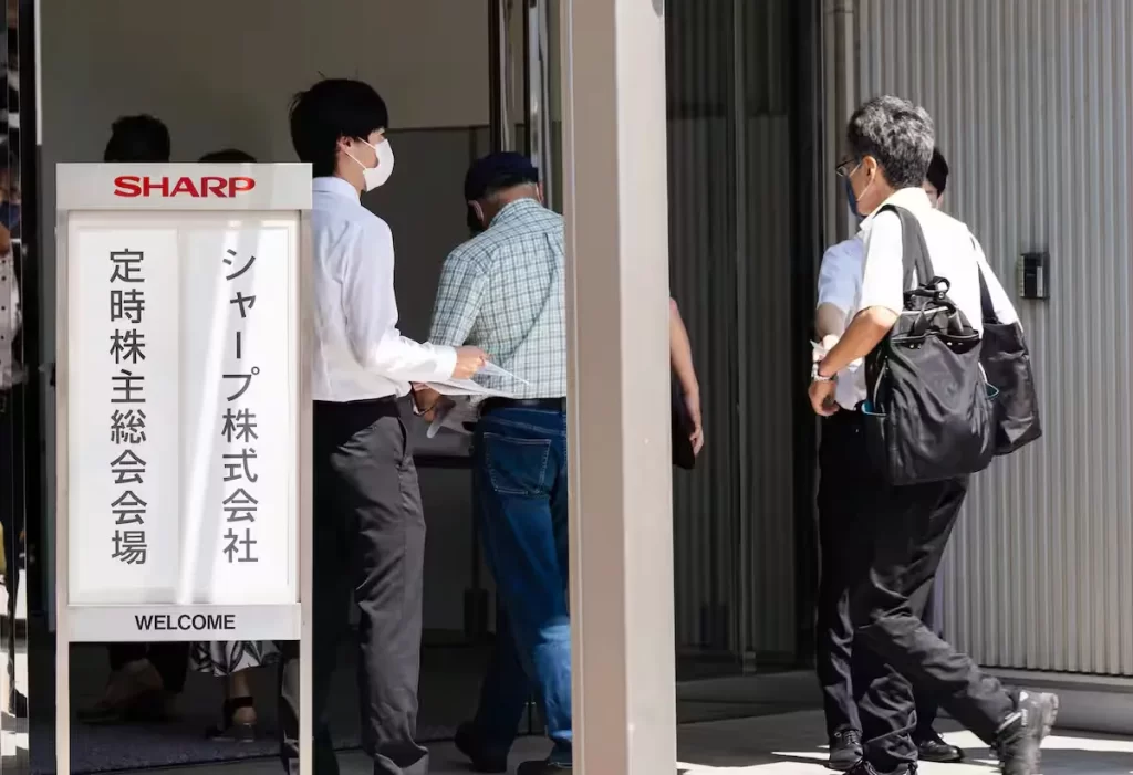 Shareholders head to the venue of Sharp’s annual general shareholders’ meeting. (June 2025, Sakai City, Osaka)