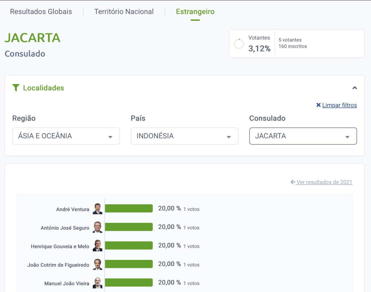 In Jakarta, only the members of the panel voted and it was a tie between five candidates.