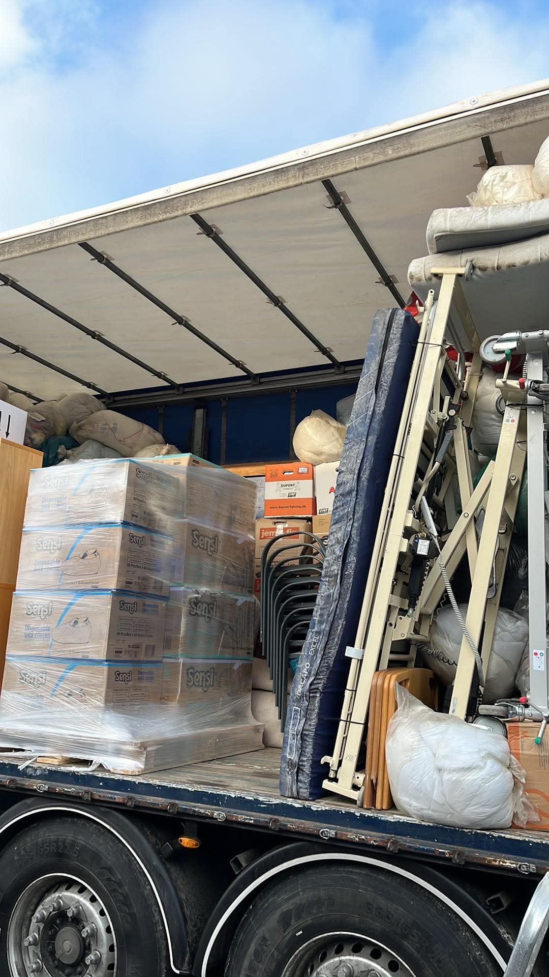 Lastbilen indeholdte blandt andet 479 kasser, sække og kufferter med med tøj og sengetøj, 12 senge og 70 luftmadrasser til flygtninge centre i Ukraine, 60 borde og 33 stole til skoler, 2 hospitalssenge og 140 hospitalsartikler til et hospital i Poltava og en enkelt generator. Hjælp Ukraine har en[hjemmeside](https://www.helpukra.dk/) og en Facebook side hvor man kan blive frivillig og donere ting og penge. Hjælp Ukraines lager er fyldt, så de vil blive rigtig glade for hvis man kan donere lidt penge. Det koster cirka 20.000 kroner at sende en lastbil. Jeg er ikke repræsentant for Hjælp Ukraine, jeg er kun frivillig.