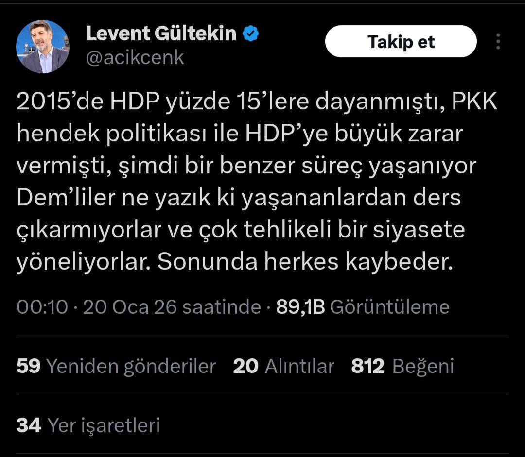 "In 2015, HDP reached 15 percent, PKK caused great damage to HDP with its trench policy, now a similar process is taking place. Unfortunately, Dem members do not learn from what happened and turn to a very dangerous policy. In the end, everyone loses."
