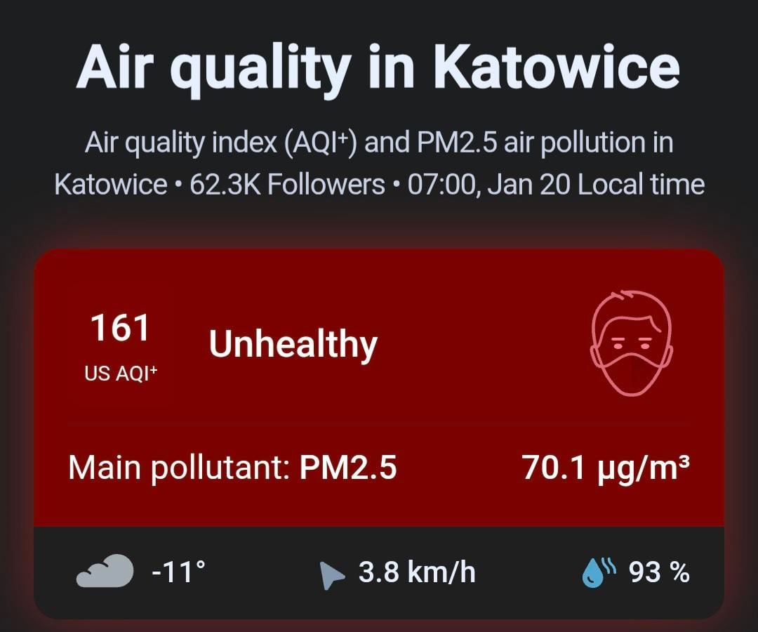 Take care of yourself, I check the air almost every day and I have never seen such bad readings in Silesia