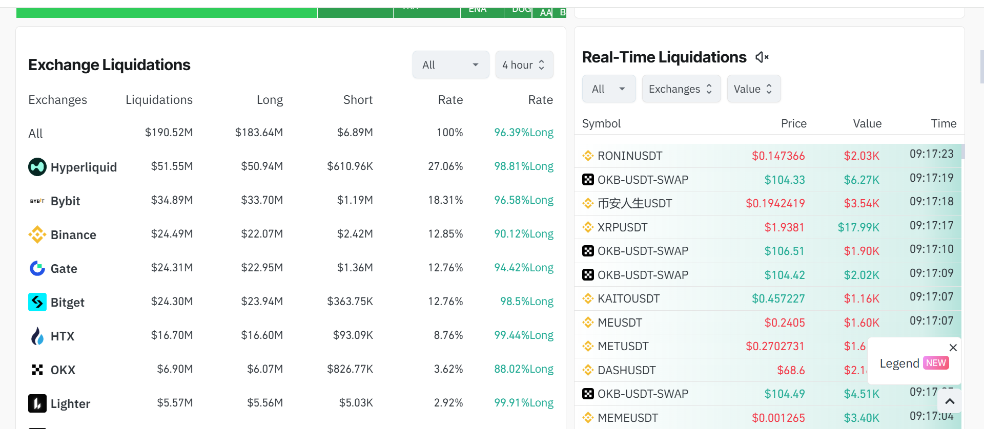 The largest single liquidation order occurred on Hyperliquid. A BTC USDT position worth about $25.8 million was forced closed, according to CoinGlass.