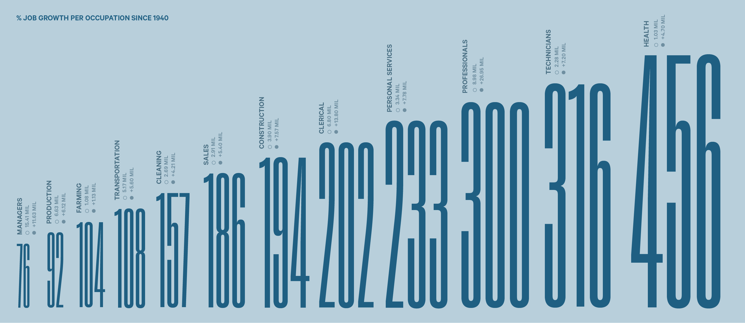 The majority of current employment is in job specialties introduced after 1940.