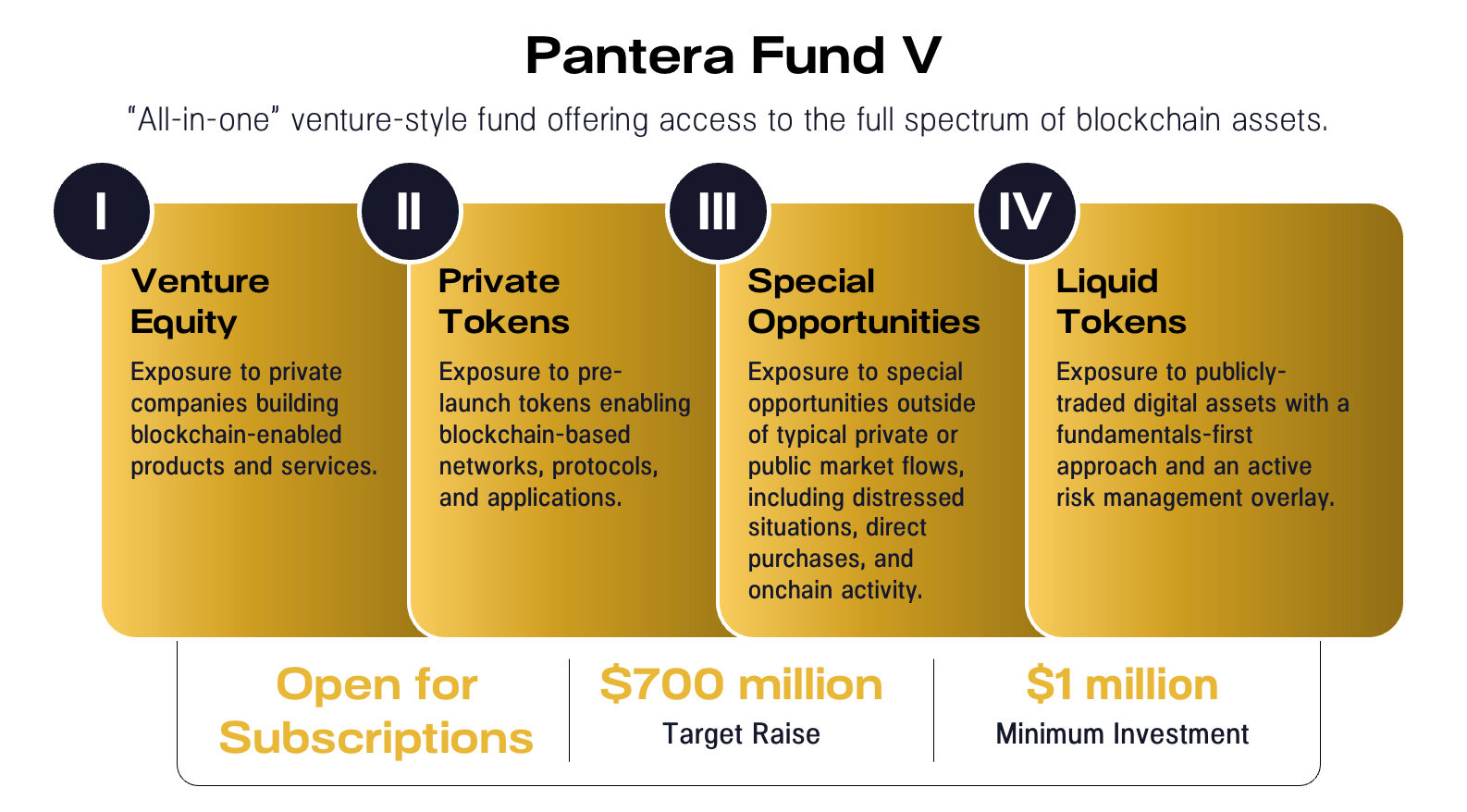 Similar to its predecessor, we believe this new fund is the most efficient way to get exposure to blockchain as an asset class.  It is a continuation of the strategies we have employed at Pantera for twelve years across twelve venture and hedge funds.