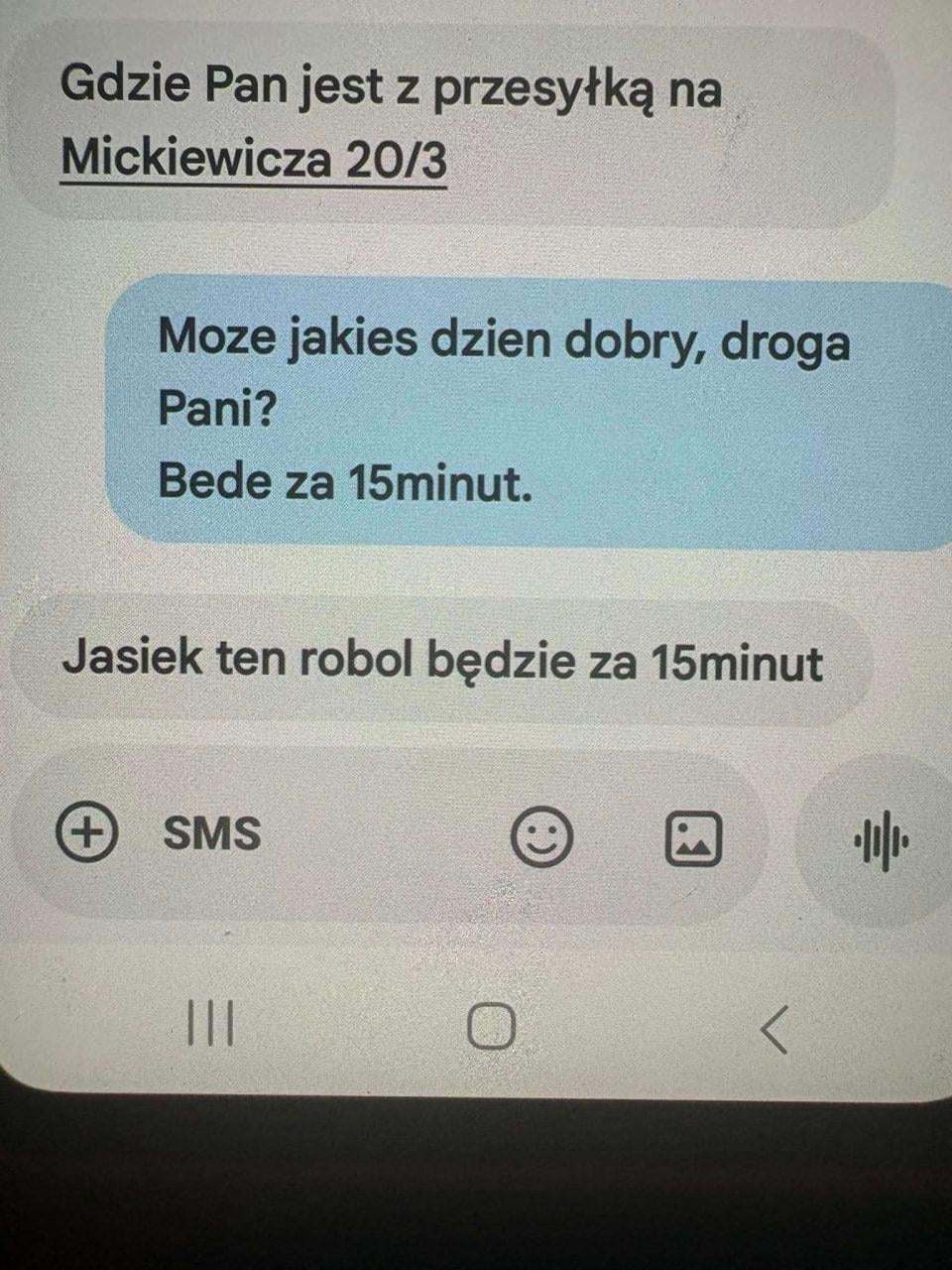 Może jestem dziwna, ale imo ten SMS to jest chamówa. Ta sama pani piszÄ…c do nauczyciela, lekarza lub stolarza napisaÅ‚aby już “dzieÅ„ dobry” i “pozdrawiam”.