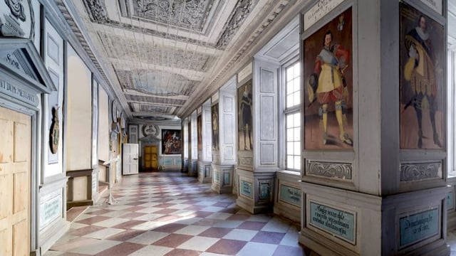 Image 1: Skokloster castle. Picture 2: Carl Gustaf Wrangel. Pictures 3 – 9: Interiors, with the armory in the last two pictures.