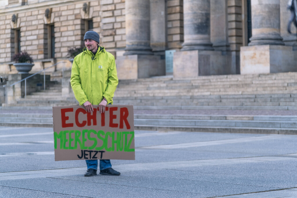 Protest against the construction of an LNG terminal off the German island of Rügen. Environmental Action Germany (DUH) and the Nature and Biodiversity Conservation Union (Nabu) have filed a lawsuit. (Imago/ Christian Grube)