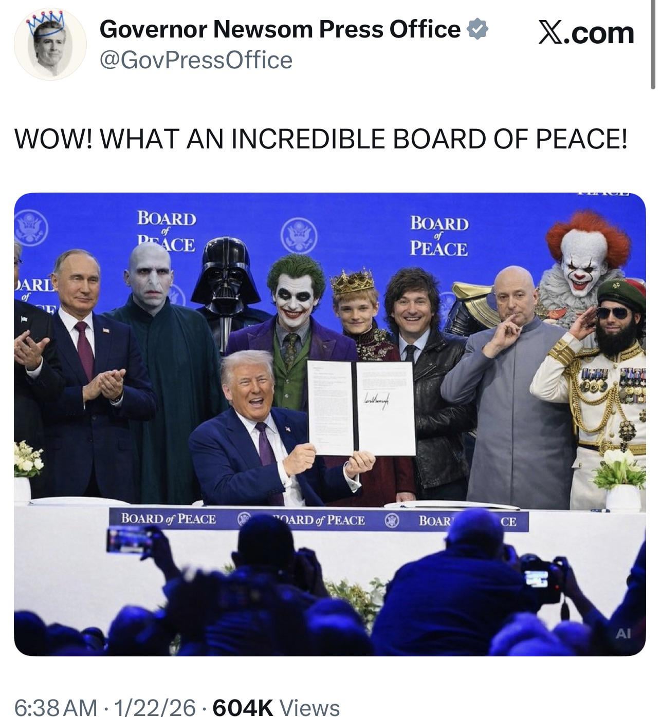 Sauron, Satan, and Kim Jong Un reviewed the Board of Peace invite and declined. It was too evil for them. https://i.redd.it/wcw935iv4zeg1.jpeg