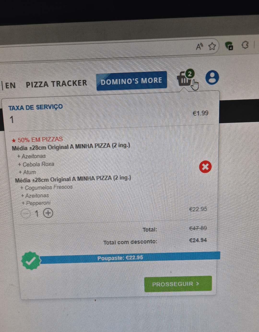 A dominos la tinha promoções de pizzas a 5 euros.