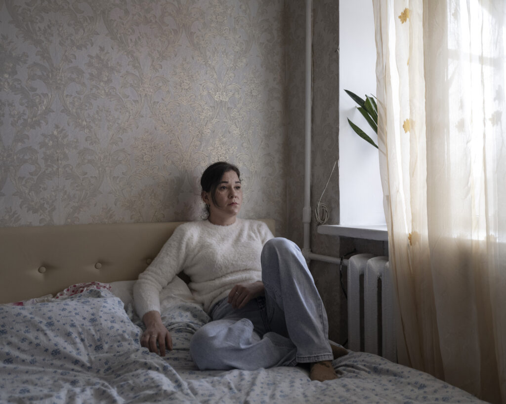 Yuliia in the room where she is currently living in Kyiv. | Johanna Maria Fritz/Agentur Ostkreuz for POLITICO