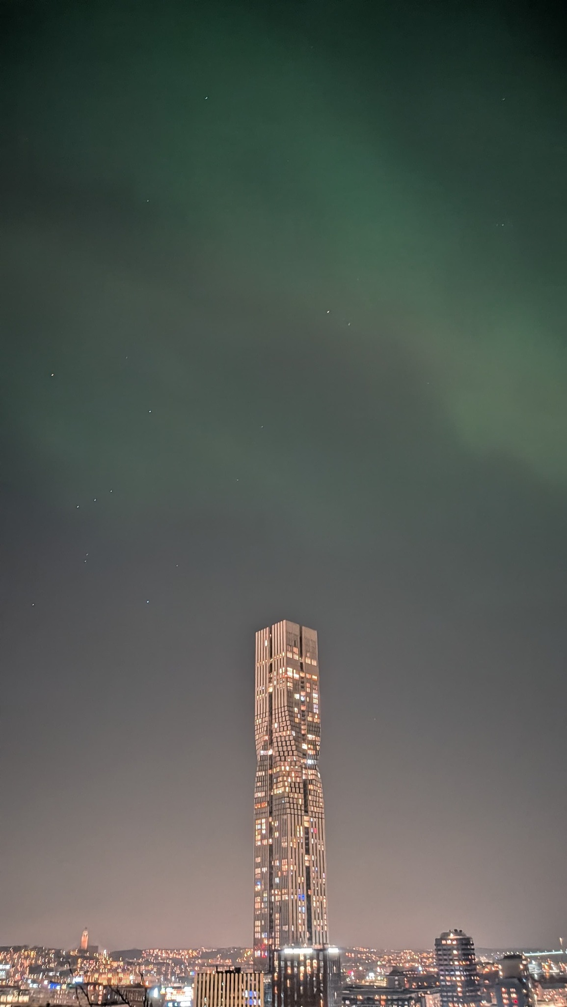 Christina Dimitra shot the Northern Lights surrounding Gothenburg’s Karlatornet skyscraper.
