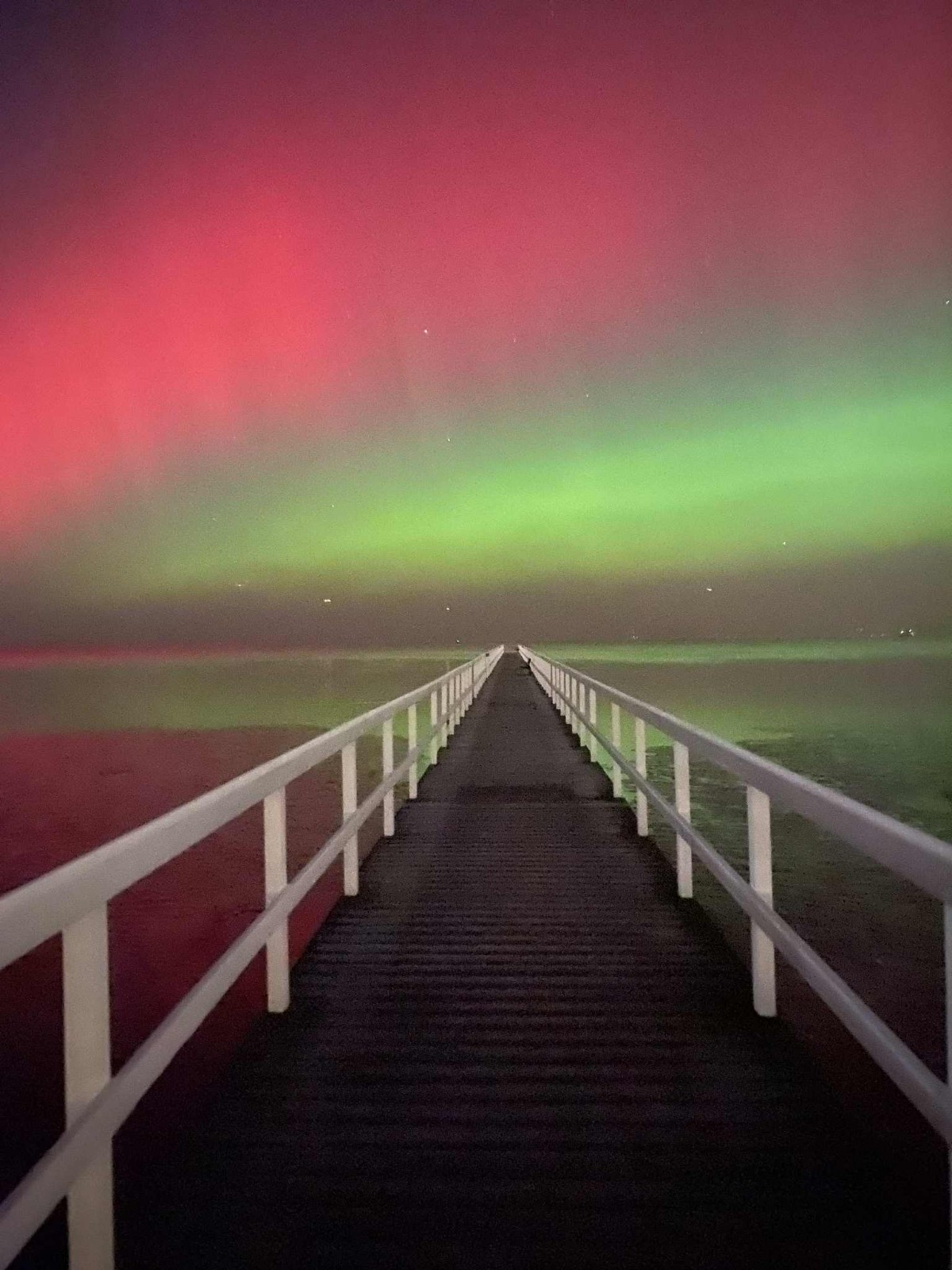 Moving south, we had two fabulous pictures of the lights shimmering above the Malmö coastline, one from Max Kanakura, who shot them over Brygga 5 on the city’s Ribersborg beach…