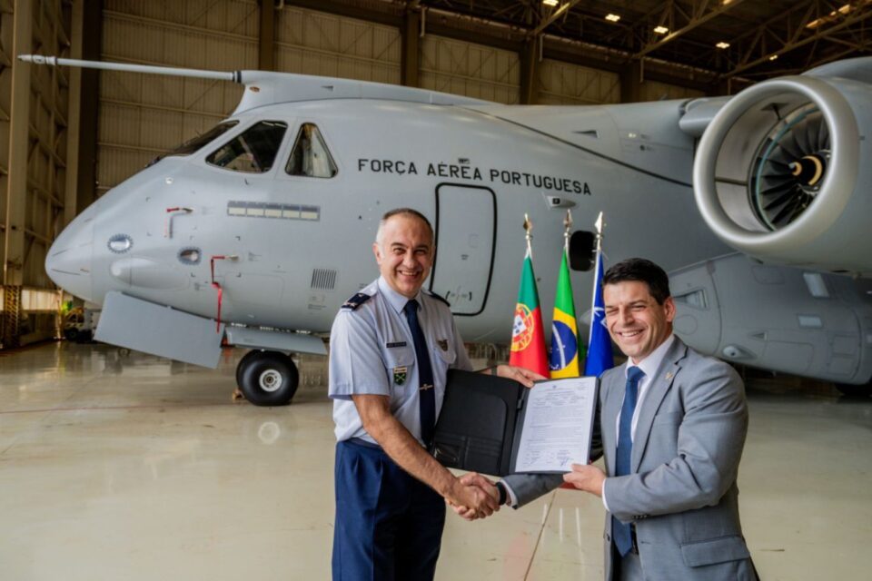 The handover took place on January 23 at Embraer’s facilities in Gavião Peixoto, Brazil, during a ceremony attended by a Portuguese delegation led by Major General João Nogueira, director of the KC-390 program.