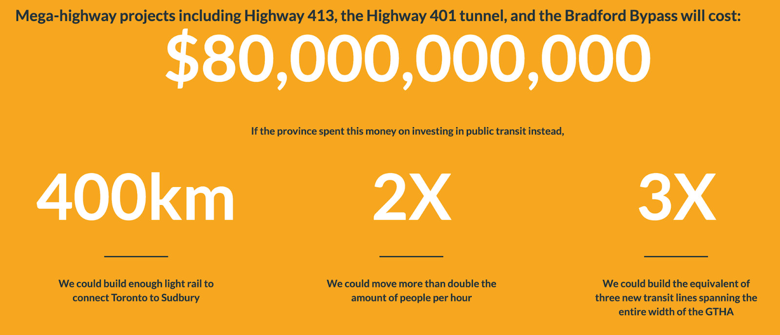 The cancellation of Highway 413 (previously called the GTA West Highway) on February 9, 2018 by the former Liberal government, was called a “game changer” — a sign of “growing provincial recognition that building complete communities rather than highway-led planning is better for our health, our shared climate and our wallet.”
