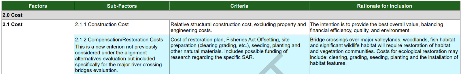 Criticizing the ministry for ruling out lower-impact bridge designs (cable-stayed and through-arch bridges) at major crossings including the Humber and Credit rivers explicitly citing cost as the reason, Marcolongo said “if cost is your starting point, rather than environmental protection, then we’re already in trouble.”