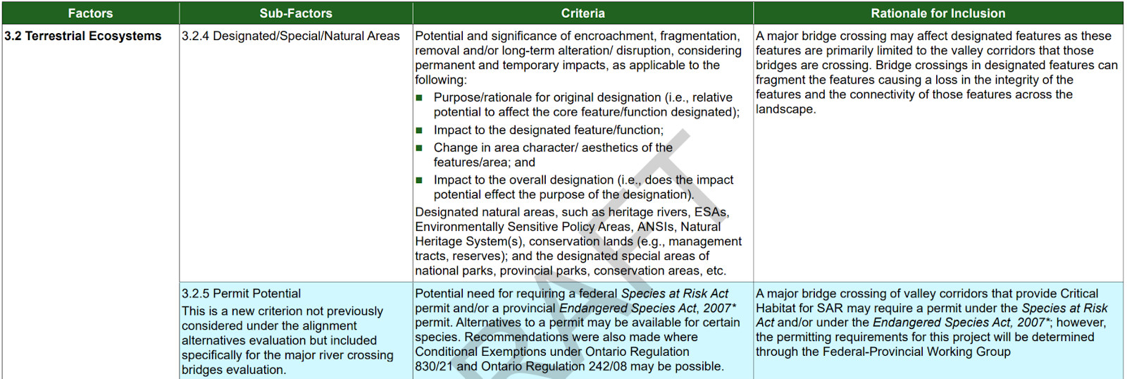 Upon closer look, Morris realized the draft EIAR explained many aspects of the areas affected due to Highway 413 construction as “already highly fragmented and degraded” which appears to be the Province downplaying the “anticipated impacts” on those ecosystems and the species that rely on them for survival.