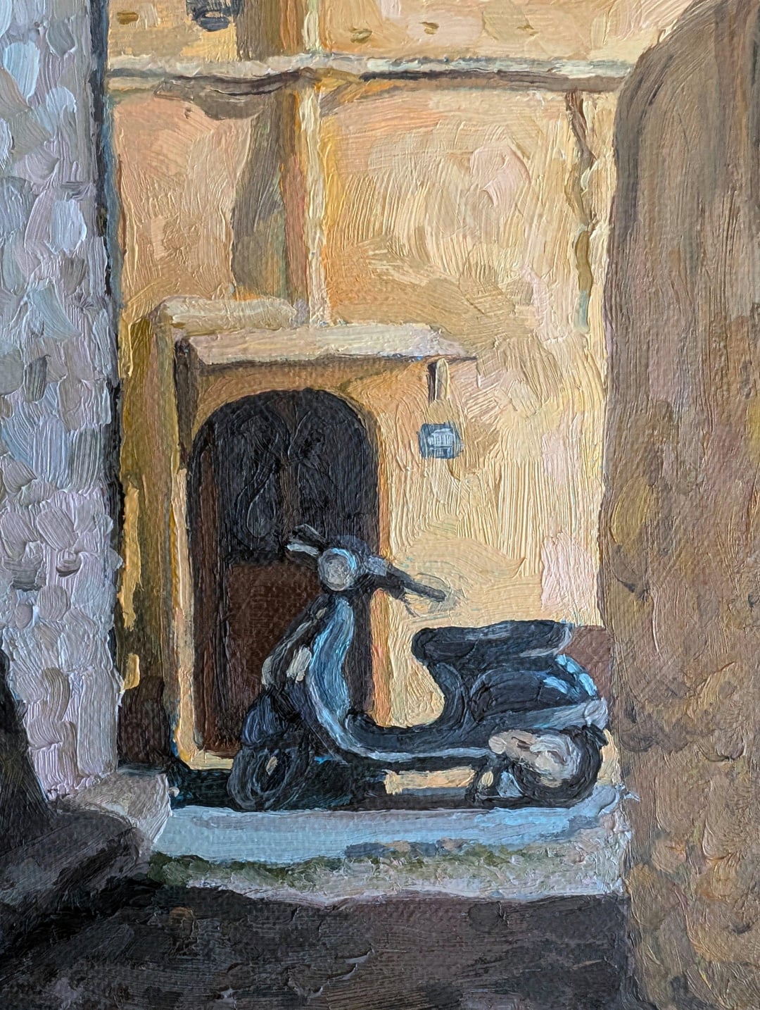 My oil painting of a scooter in sunny Rhodes, Greece